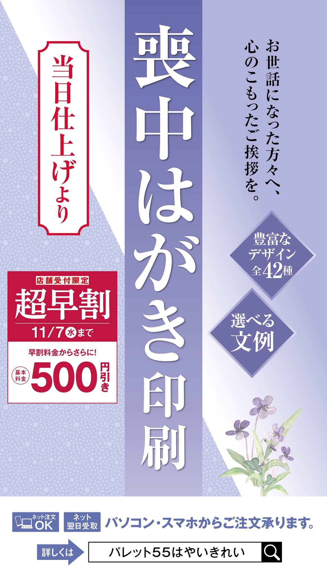 喪中はがきの印刷なら 喪中はがき印刷パレット55はやいきれい